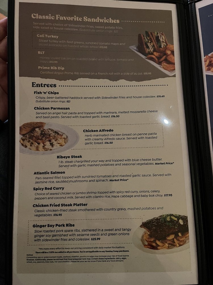 Black Oak Café offers a range of American breakfast and brunch options in a casual, family-friendly setting. Located conveniently near a casino in Tuolumne, CA, the café provides takeout, delivery, and reservations services. With a diverse menu featuring many vegetarian options, wheelchair accessibility, and free Wi-Fi, Black Oak Café caters to a wide range of diners. Customers appreciate the delicious meals, like pan-seared salmon salad, tri-tip sandwich, and chicken fried steak. The café's staff receives praise for their friendly service and attention to detail. While the atmosphere can get loud and smoky due to the casino setting, the generous portions and tasty dishes make dining here a satisfying experience. Try the hearty options like Tuscan Salmon, Chicken Alfredo, or the Black and Blue Burger for a fulfilling meal.